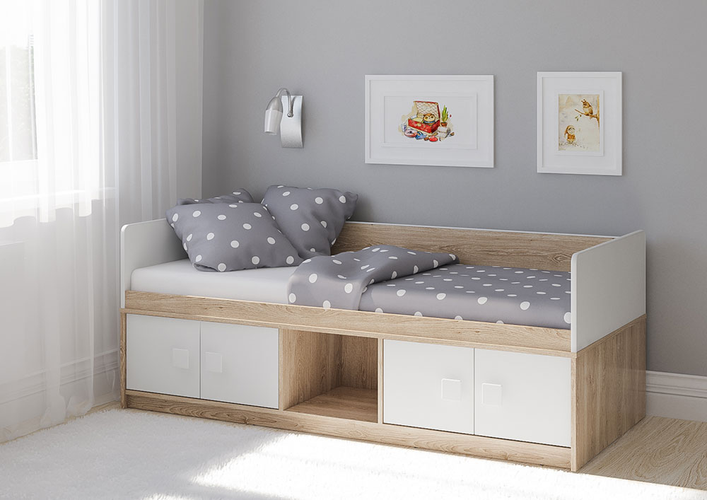 Расцветка: сонома светый/белый с размером спального места 190х80.